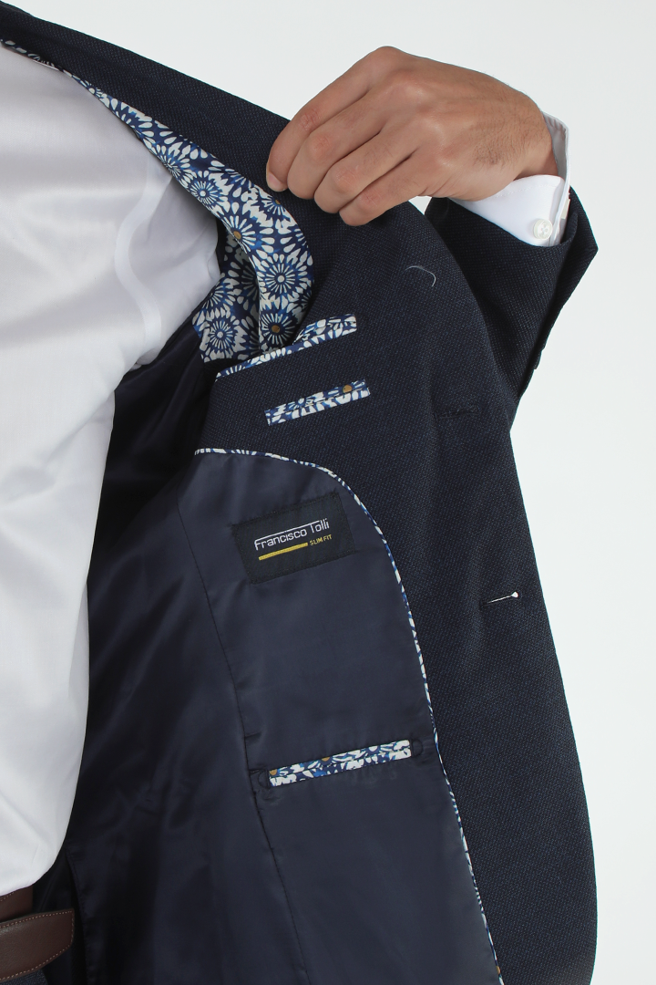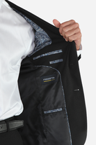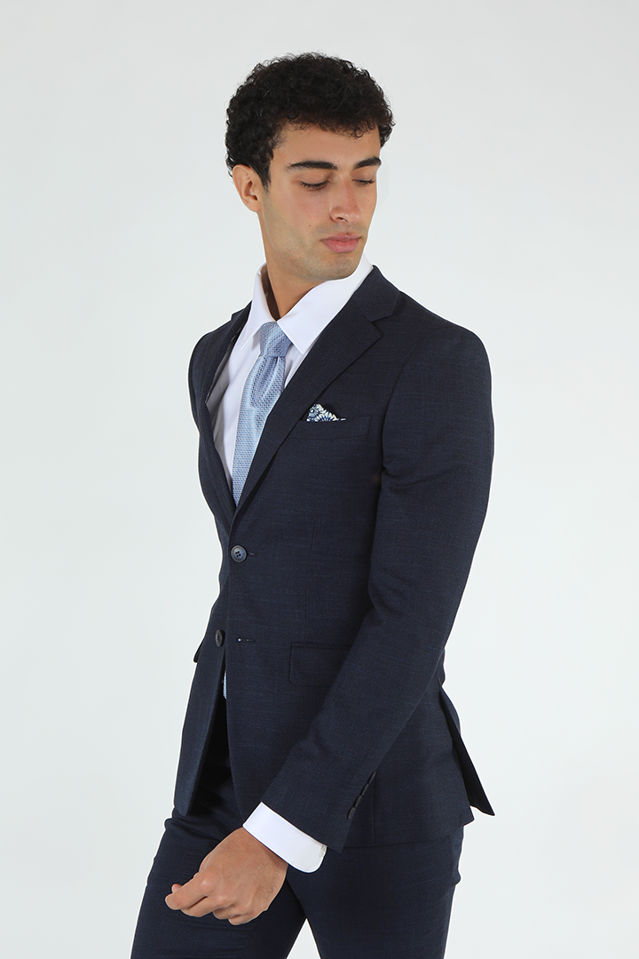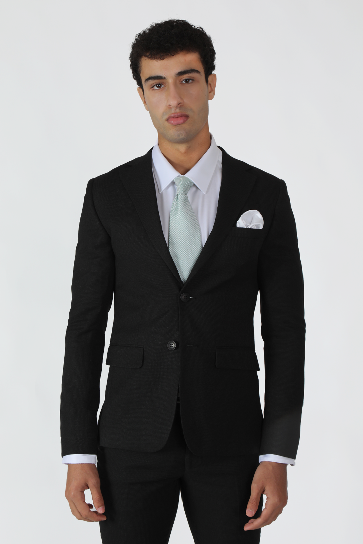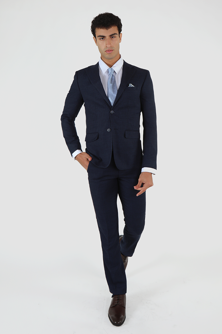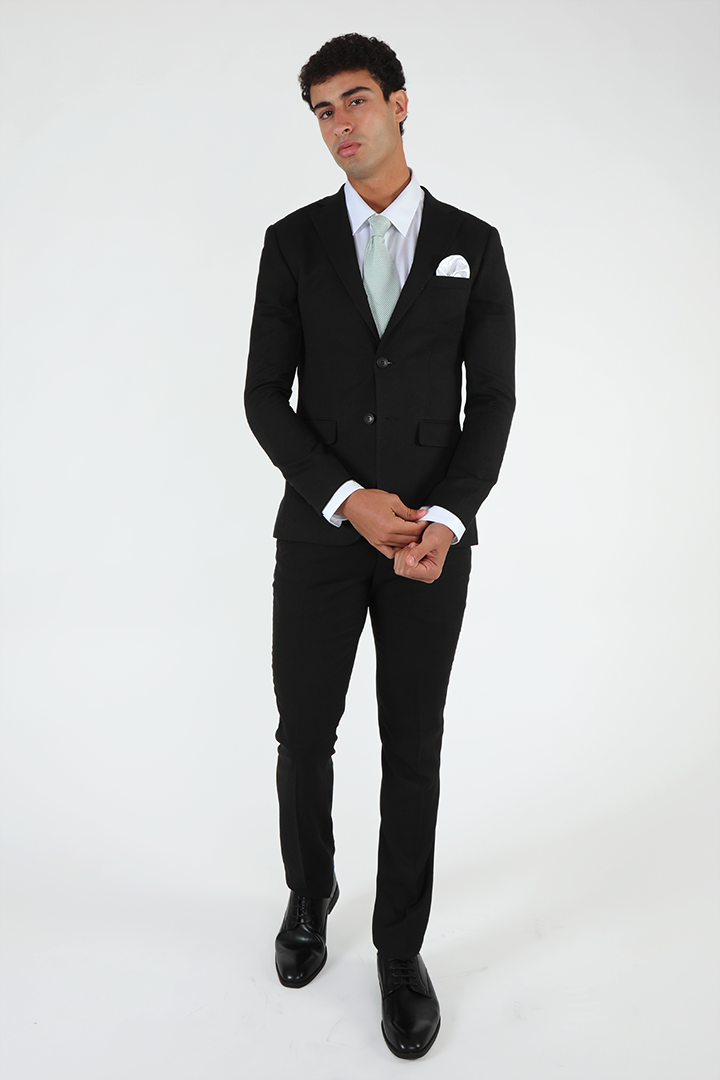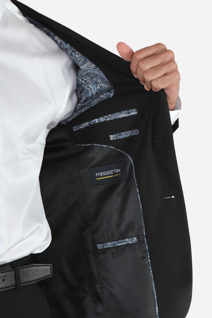For a more timeless, sleek look, the Francisco Tolli slim fit formal suit in black offers a sophisticated style with a self-design pattern. Composed of 88% polyester, 10% viscose, and 2% spandex, it provides the perfect balance of luxury and comfort. The slim cut fits close to the body, creating a sharp, clean line while maintaining flexibility and ease. This suit’s two-button design and back double vents ensure a streamlined and flattering fit, making it a versatile option for any formal occasion.