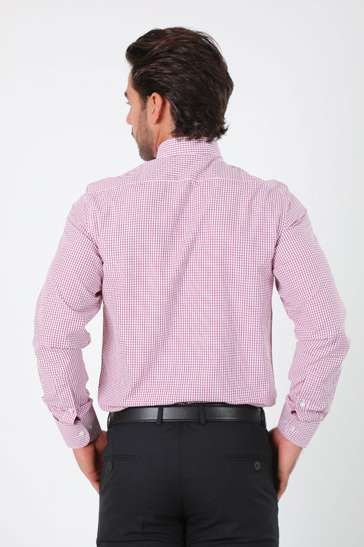 Elevate your formal attire with the Alberto Paolucci Slim Fit Shirt. Made from a blend of 55% polyester and 45% cotton, this shirt combines durability with comfort. The subtle small checked pattern in maroon adds a touch of sophistication, making it perfect for business or special occasions. Its slim fit ensures a sharp, modern silhouette.