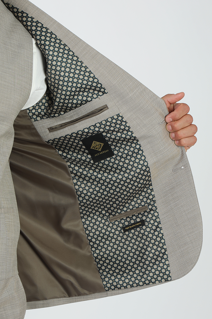 This Jack Morgan beige fresco suit is the perfect blend of light, breathable fabric and stylish design. Made from 85% polyester, 14% viscose, and 1% spandex, it offers both comfort and durability with a refined fit. The slim cut and two-vent design enhance the suit's clean, sharp silhouette, while the fresco fabric ensures you stay cool and comfortable. Ideal for daytime events or summer occasions, this beige suit adds a refreshing touch to your formalwear collection.